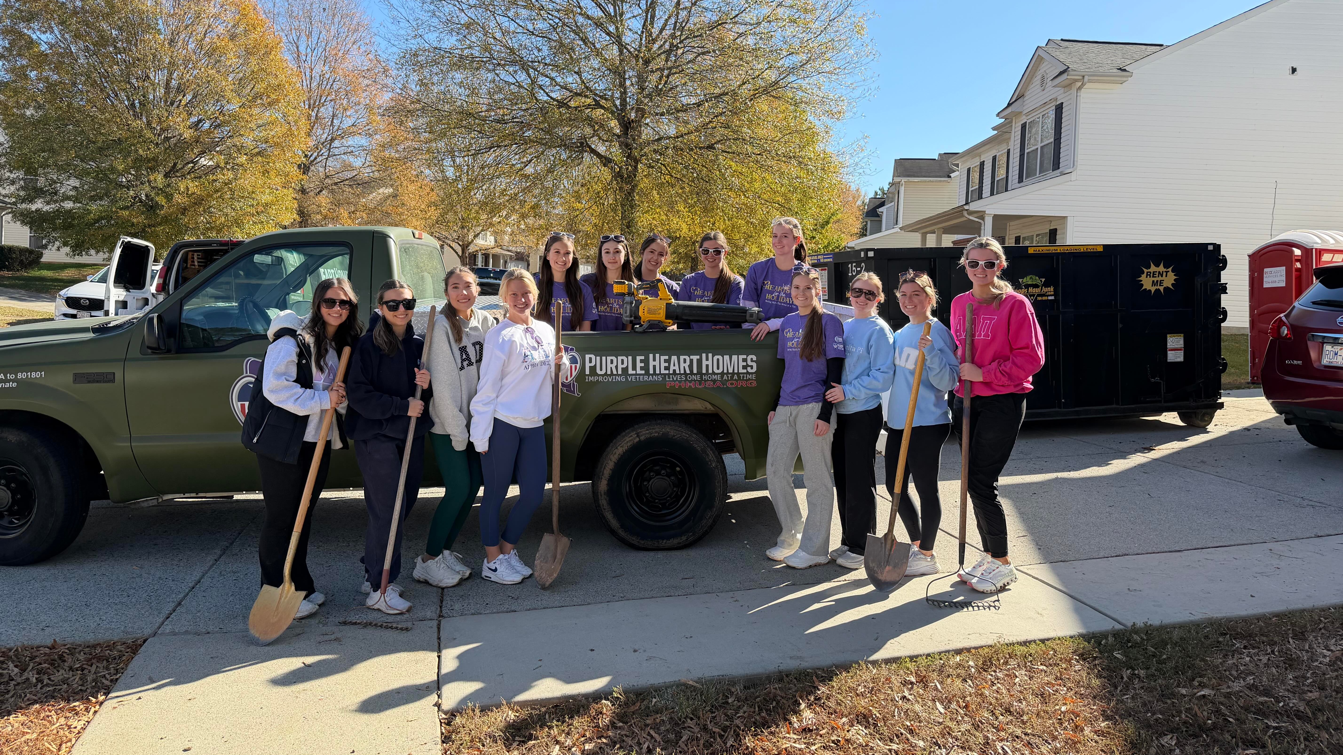 As the Mission Complete celebration approached, volunteers from the Zeta Gamma Chapter of Alpha Delta Pi at UNC Charlotte stepped in to make Yolanda's home even more beautiful. The chapter spent the morning of the celebration completing landscaping improvements and refreshing the outdoor space to welcome Yolanda home with pride.