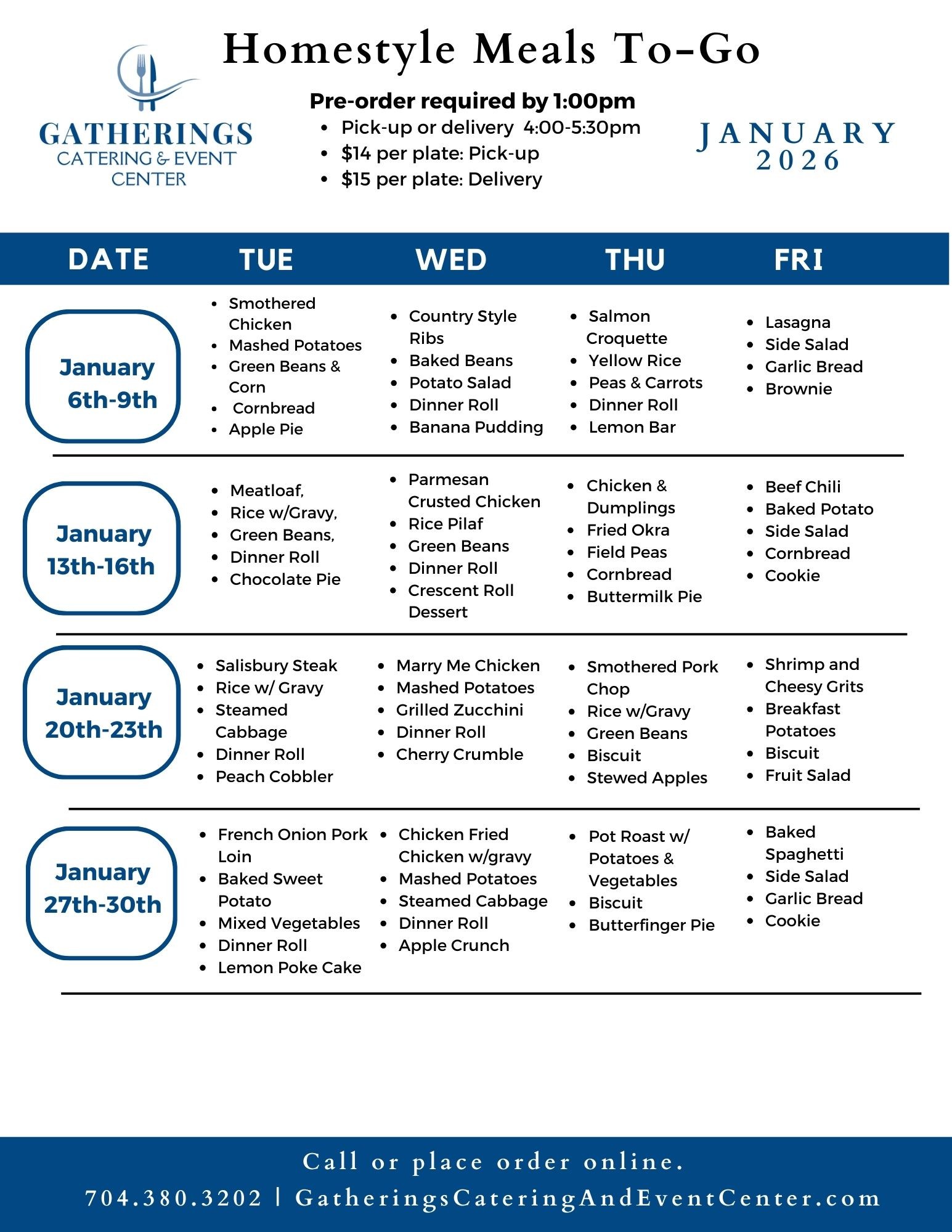 Gatherings Catering and Event Center Daily Homestyle Meals-To-Go